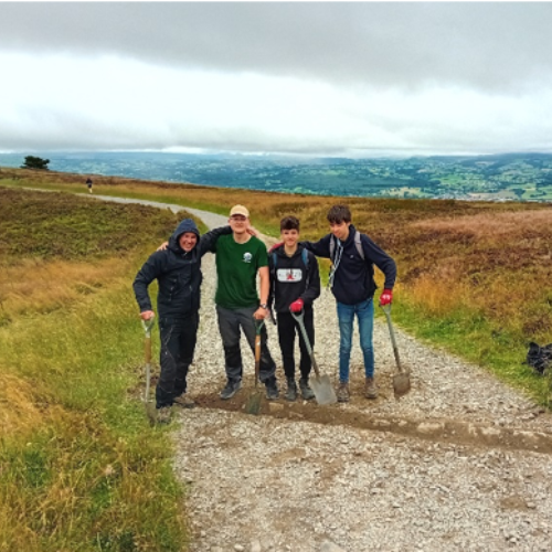 Ni fyddai’n daith i Fryniau Clwyd a Dyffryn Dyfrdwy heb fwynhau ein bryn mwyaf, Moel Famau. Ar Ddiwrnod 5 fe aeth y Ceidwaid Ifanc i’r afael â thasgau cynnal a chadw hanfodol fel cloddio ceuffosydd draenio, torri prysgwydd a chasglu sbwriel. Am ennyd hawliwyd y Tŵr Jiwbilî ar gyfer Denmarc, ond llwyddodd Ceidwaid Ifanc Bryniau Clwyd a Dyffryn Dyfrdwy i’w gipio’n ôl i Gymru!