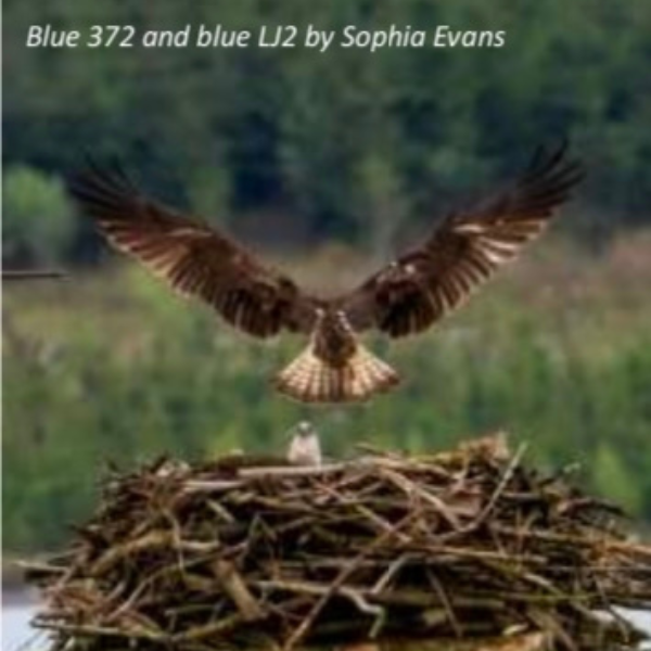 September sees the migration of Ospreys from the UK and Europe as they travel up to 4000km to their wintering grounds in West Africa. We look back on a very successful season which began when true to form blue LJ2 (resident male) arrived on 31st March, this was the same day he returned in 2023. He wasted no time in displacing the gulls that had seemingly taken up residence on the nest. Then set to work at scraping away to create the egg cup and tidy up in preparation for his female LM6 to return. As the days went on and the arrival due date for blue LM6 past LJ2 waited patiently but she didn’t return. LM6 legacy is that she had 4 Juveniles 2 in 2022 blue X6 (Olwen) and blue KA9 (Gelert) and 2 in 2023 blue 7B5 (Dilys) and blue 7B6 (Mari).
